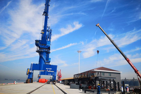 我公司于2018年12月與南通通常港務有限公司簽訂港口散裝物料物流中轉項目設備一批,2019年3月15日我公司安裝人員已正式進入現(xiàn)場進行安裝,為保證業(yè)主單位的生產進度及港口卸船機與帶式輸送機的協(xié)同生產,我公司安裝人員在現(xiàn)場加班加點,目前現(xiàn)場已初具規(guī)模。