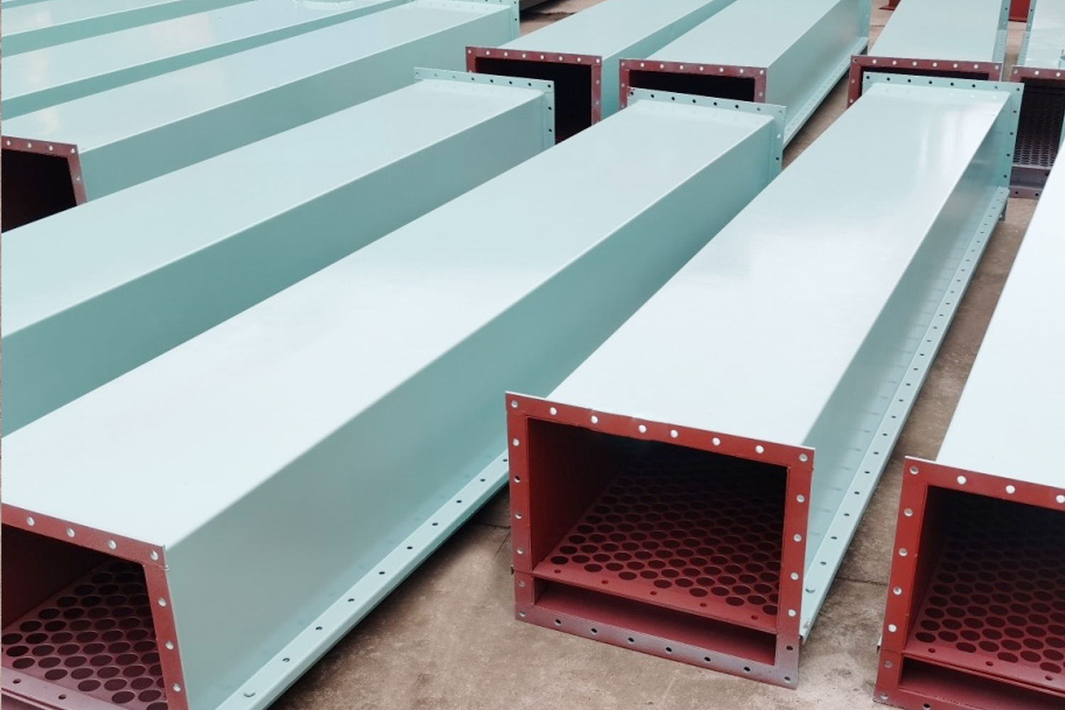 空氣斜槽用于水平輸送干燥粉狀物料的設備。它是由數個薄鋼制成的槽子聯接組成,并沿其輸送方向布置成一定的斜度。空氣輸送斜槽主要用于水泥、粉煤灰等易流態化的粉狀物料。
