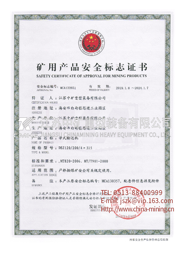 DSJ帶式輸送機(jī)——礦用產(chǎn)品安全標(biāo)志證書